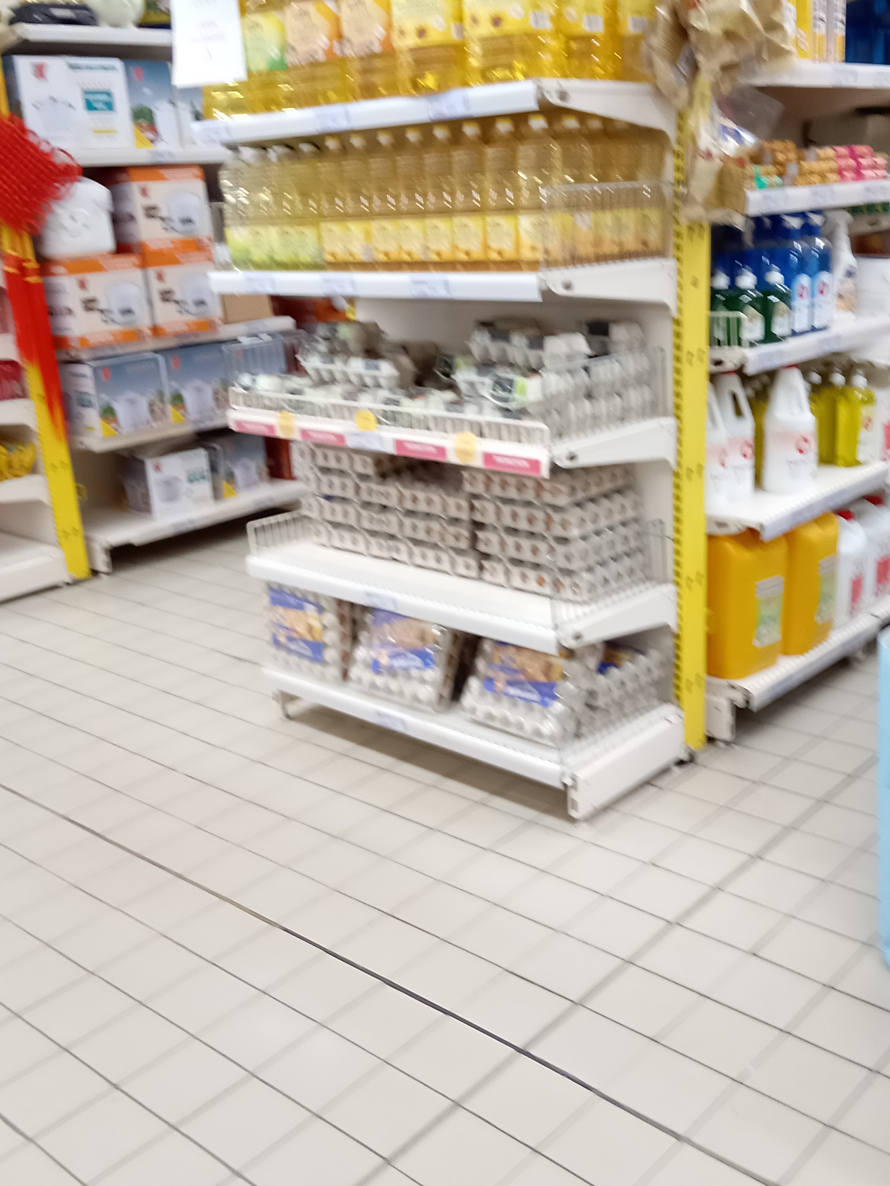 Je suis rentrée, lumière morose, je me suis approché des surgelés, le paquet de feuilles de raviolis etaient sales et poisseux, pourtant en surgelé, j'ai regardé vers les autres produits surgelés, idem. Je me suis avancée dans l'allée, un sentiment de sale, je me suis dirigée vers la sortie. Le magasin ne me donnait pas envie. Un bon coup de nettoyage est nécessaire.