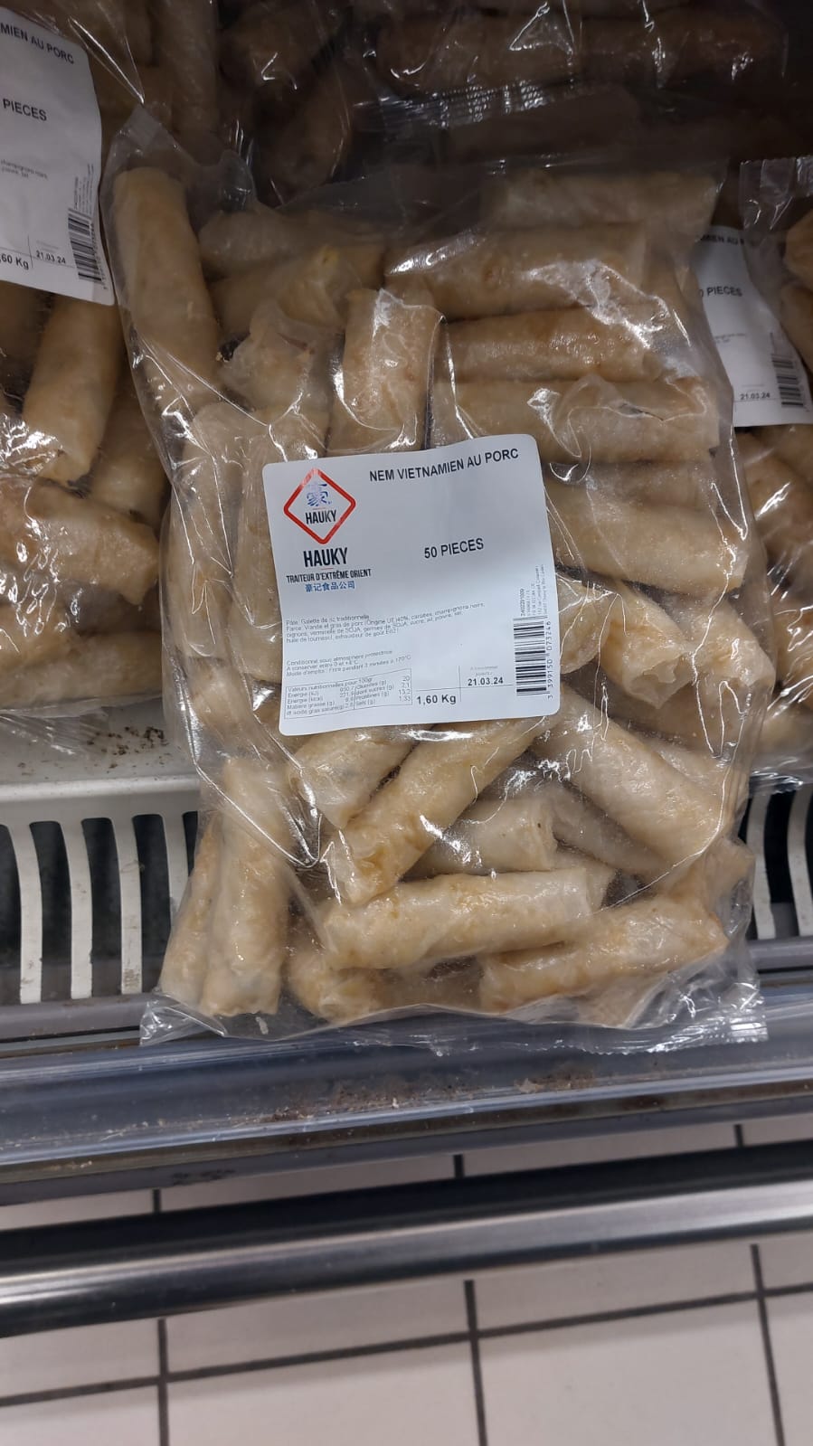 Posté le 01/05/2021 à 18:12"Faire très attention ⚠. Achat fait le 18 Mai . Des nems aux crevettes . Arrivée à mon domicile je m'appretais à les faire cuire je lis l'emballage et à ma grande surprise la farce était faite de porc. 30 % de crevettes et tout le reste du porc. C'est un peu inadmissible pour ceux qui ne mange pas de viande. Et qui pense manger des crevettes. Donc faites attention. Ce sont les nems emballage noir au rayon frais. A côté des nouilles...etc."